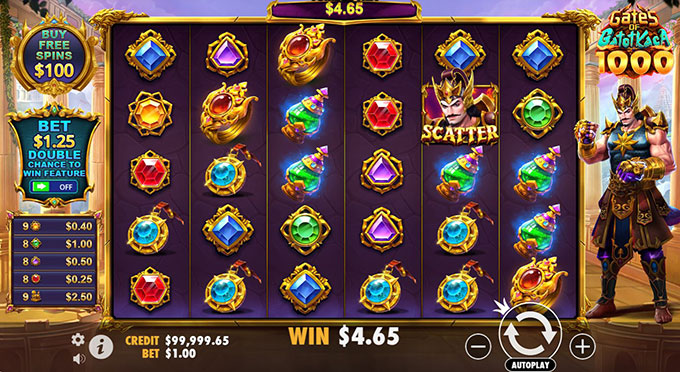 Khi tham gia Gates of Gatot Kaca 1000, người chơi có thể nhận thanh toán tại 20 dòng nhờ vào việc ghép các biểu tượng lại với nhau. Người chơi có thể rời khỏi trận chiến này và nhận thưởng lớn chỉ sau vài chục giây mỗi vòng quay.